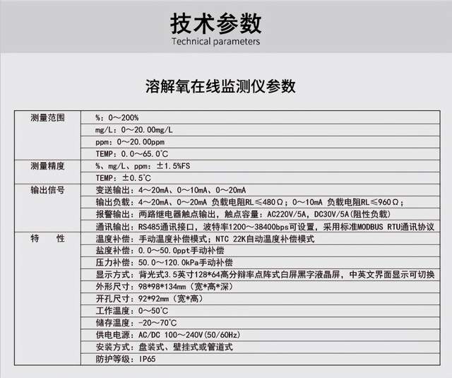 •采用3.5英寸高亮度、高分辨率128*64點陣液晶顯示,可直觀顯示溶氧值、二路模擬輸出值、溫度和二路報警狀態值。