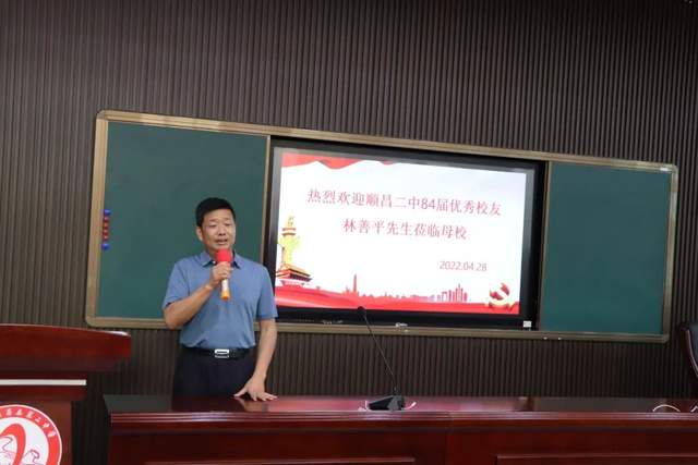 時值我校40周年校慶到來之際,4月28日下午,順昌二中84屆優(yōu)秀校友林善平先生蒞臨母校,為我校學(xué)子作了題為《一生擔(dān)承》的講座,講座由我校副校長張百花主持。