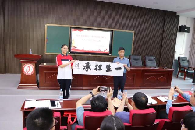 最后林先生給講座現(xiàn)場的學(xué)生們每人分發(fā)了一份禮物,我校將學(xué)生的書法作品和竹木工藝作品作為回贈。